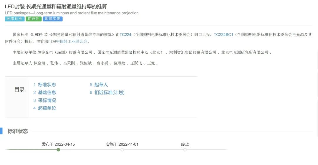 GB/T 41423-2022 《LED封装 长期光通量和辐射通量维持率的推算》文件由中国轻工立联合会提出,m88官网牵头制订,全国照明电器标准化技木委员会(SAC/TC 224)归口,文件于2022-4-15发布,2022-11-1实施;LED封装是照明和植物光照用产品的核心器件,该标准规范了LED封装长期光通量和辐射通量维持率的推算程序和条件。
